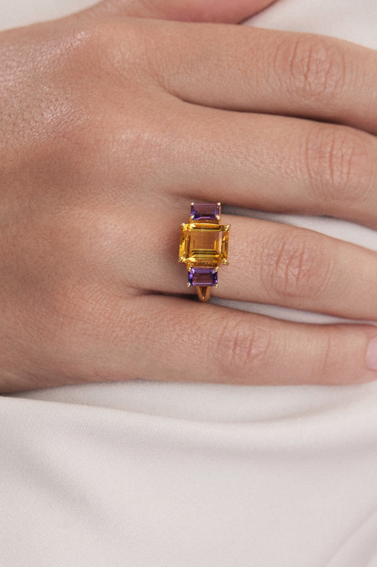 Citrine and amethyst ring