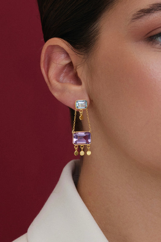 Blue topaz & Amethyst drops